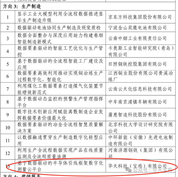 近日,工業(yè)和信息化部辦公廳公布 2024 年工業(yè)領(lǐng)域數(shù)據(jù)要素應(yīng)用場景典型實踐案例名單,華天科技(寶雞)有限公司的“基于數(shù)據(jù)驅(qū)動的半導(dǎo)體引線框架數(shù)字化測量云平臺”成功入選,陜西省共入選2家。